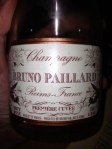 N.V. Bruno Paillard Champagne Rosé Brut Première Cuvée (375 ml: half bottle):  Chilled for 25 minutes in the freezer.  Got it to the restaurant and the cork took quite a bit of coaxing to get out.  When it finally ‘popped’, there was but an ever so slight sigh–even a whimper.  I was worried.  The color was a very pale salmon at best (a little more worried), and the nose had hints of age (full-on worried).  There was also fruit, however, mostly a touch of over-ripe strawberry and caramel.  A slight sparkle rose gently, teasing me a bit.  My wife was still in the back with the little one, so I took advantage: big pour, big gulp.  Wow and… Well.  I loved it, but this is not a champagne for the faint of heart–some fruit, but muted by the slightly oxidized sense of age.  I bought a few of these a couple years ago, but clearly they had already had a several years on them.  Admittedly, my wife was not much of a fan–she let me finish the bottle (bonus!)–but this was right in my wheelhouse.  An aged champagne with a bit of fruit and a ton of character–I could not ask for more.  92+ points.