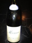 2003 Matrot-Wittersheim Meursault Tasted 3/6/2012. Retail ~$30. I paid $20. This was our first dinner without the family matriarch, and quite predictably, the younger son (3.5 year old) requested fish tacos when given the chance to decide what to have for dinner (he asks if we can have fish tacos every night regardless of the situation). I went downstairs, expecting to find three bottles of this Meursault, but of course there were only two (I really need to do a full inventory of the ‘cellar’–the problem is I only ever ‘discover’ that I am missing several bottles [I never ‘find’ extras] which means that not only am I a drunk, but also terribly disorganized). After a brief stint in the freezer, I popped and poured. Color starting to get a bit dark but no other signs of oxidation. Bright Meursault nose, some lemon peel and vanilla. On the palate, tart and bright–acidity, well balanced with a hint of the lemon coming through the minerality. Very nice, but clearly getting a bit old. 88 points.