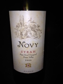 2006 Novy Family Wines Syrah Page Nord Tasted at Hickory Lane 3/9/2012. Retail ~$29. I paid $23 at the winery. This is the second label of Siduri by Adam and Dianna Lee. They use the Siduri name for all their pinots and Novy (Dianna’s maiden name) covers everything else. Is you are ever in Santa Rosa, be sure to get an appointment and visit. Paired with a big sirloin steak. Popped and poured. Some really big fruit remains here: blackberry and plum, mostly. On the palate, well balanced and clean, while trying to restrain its ‘bigness’ in that familiar Adam Lee way. Well done and outstanding. 92 points.