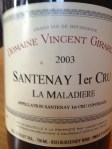2003 Domaine Vincent Girardin Santenay 1er Cru La Maladière: Retail ~$35.  2003 was an incredibly hot year in France and many worried how individual vignerons would handle all that heat.  Well, at least with this wine, Girardin went big.  This is much more ‘New World’ style than ‘Old World’, meaning a lot of fruit and not much ‘forrest floor’ or ‘barnyard’ that can characterize Burgundies. This Girardin does it successfully, lots of plum and sour cherry with a lot of weight.  Outstanding.  90 points.