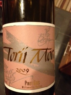2009 Tori Mor Pinot Gris:  Retail ~$18. More pinot goodness from Oregon, albeit the ‘gris’ version.  I have not had many wines from Tori Mor, but this was a very solid, impressive effort.   Not an overwhelmingly fruity wine, but there were some hints of orange and pineapple.  On the palate, bone dry–I guess I was expecting an Alsace style, with at least a bit of sweetness.  Very nice acidity and tartness, but a little weak on the finish.  Very Good.  86 points.