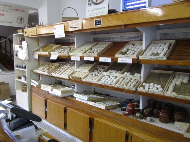 Inside they had a rather amazing selection of goat cheese. To be honest, I really do not like goat cheese, in fact I find it rather repulsive (just keepin’ it real, here folks). A lot of people seem to go all gaga over it, though, and since I am seen as this huge Frenchie wannabe, I try and go along to maintain the persona. Since it requires me to down a whole lot more wine to compensate for the taste of the cheese, well, it might end up being a net benefit. I guess I should just keep my mouth shut and move on. Crottin de Chavignol is famous throughout the goat cheese world, but I do not really get it. My French is certainly not what it used to be (but is not ‘bad’ by any means), but I had to look up “crottin” again because I remembered the word meaning ‘horse dung’. Not exactly mouth watering. I thought about asking my son, who goes to a French immersion school and is fluent in French, but I decided against it. First, his French is getting to a point where it is as good if not better than mine. When I make a mistake, he never lets me forget it (‘Remember that time when you said le pizza? What were you thinking?!?’). Second, if I happened to be correct, he would never let that pass either since he is only nine and his father just said ‘horse dung’ (he likely would have asked what ‘dung’ meant and when I told him ‘poop’ he likely would have chortled the rest of the trip).