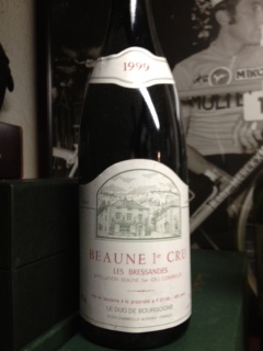 1999 Le Duo de Bourgogne Beaune 1er Cru Bressandes: Retail ~$45-50. I bought this over ten years ago from the winery just outside of Beaune, from the wife of the vigneron, who was just the nicest person you could ever meet.  I have been here a few times, and their 15 year old son is often the one conducting the tastings.  Yeah, that would happen in Sonoma.  As for the wine, surprisingly, even though it was six years older, this wine seemed to have more fruit both on the nose and the palate.  As expected, it was not as rustic as the Santenay, but it was clear that the two were certainly from the same family.  Outstanding.  92 points.