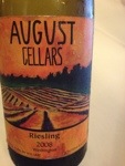 2008 August Cellars Riesling: Nice flinty nose with a bit of fruit and petrol. Really fruity (apricots) on the palate and 2.5% residual sugar (RS) which provided a hint of sweetness.  More in the German style than Alsatian and very reasonably priced at $14. Tom, the wine maker says he wants “this to be your Tuesday night wine, not your 10th anniversary wine.” Good finish. Very good. 88 points. Tom: “If it’s gonna cost $50 you should be wearing it or putting it on your wall”.