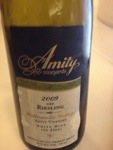 2009 Amiity Vineyards Dry Riesling: Poured by the national sales manager for the winery. The winery is located in the Eola Hills, which is at the southern end of the Wilammette Valley. The vines were planted in 1971 (first vines in OR in 1966). 100% dry farmed and 100% sustainable viticulture. Tropical nose, seems to be a cross between German and Alsace. On the palate, extremely dry (0.18% RS), a little bit high in acidity, but reminds me of Alsace, which is a good thing. Very Good. 89 points.