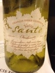 2010 Francis Ford Copola Votre Santé Chardonnay California: $12 retail.  50% of the wine spends 6 months in new French Oak the rest is in stainless steel. The name comes from his grandmother who was Tunisian and spoke French (that’s a plus) and would say “Votre Santé” (‘to your health’) as a toast when drinking wine. A muted nose which was likely because it was a bit cold.  On the palate, I was quite surprised, I was ready to hate it, but for the price, this kinda rocks. Very Good. 89 points.