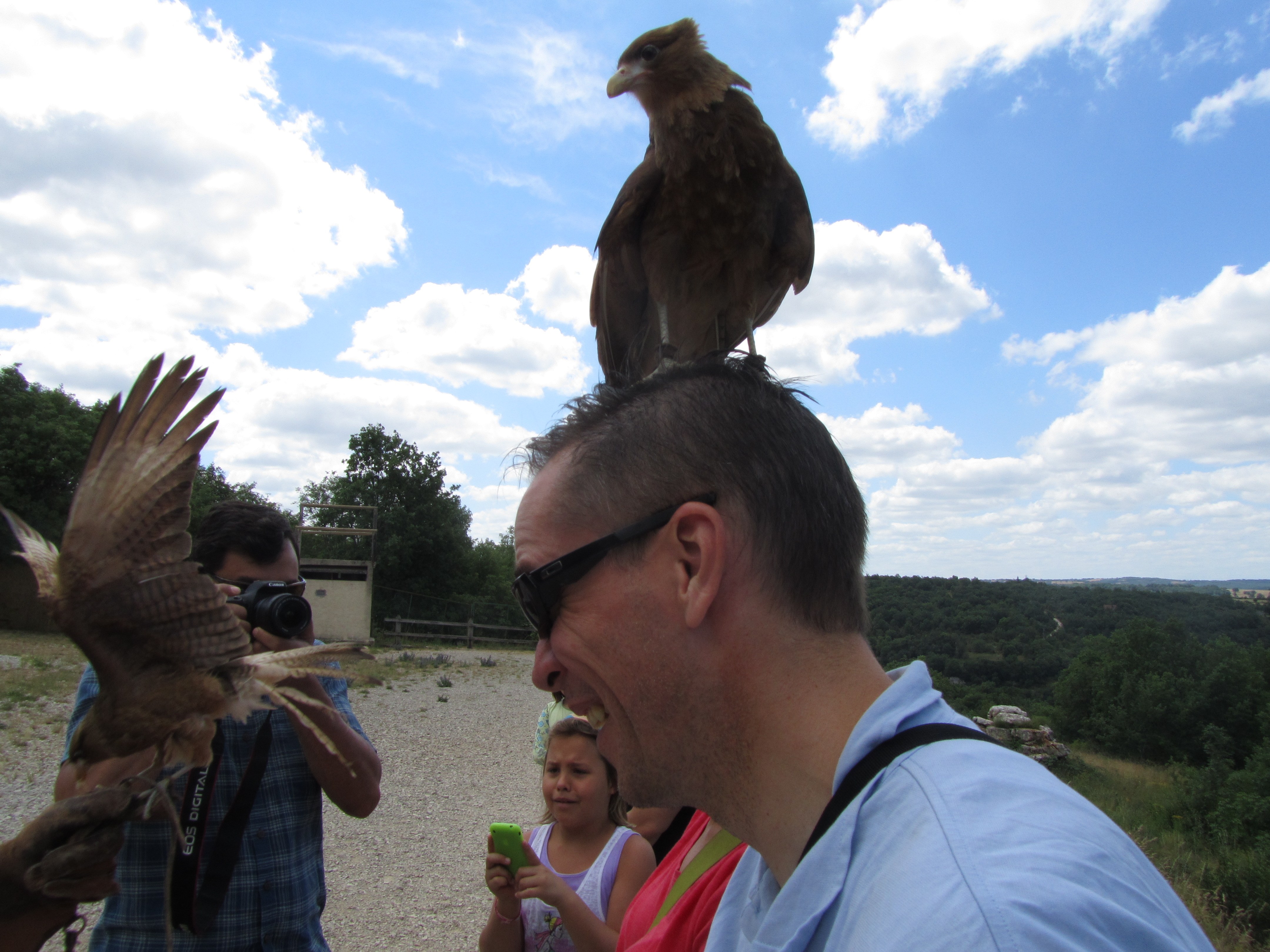 One of those places (#2 after Paris–any guesses on #1?) is the subject of today’s post: Rocamodour. Technically, Rocamodur is not in the Dordogne, it is in the Lot, but that does not stop the people of the Dordogne considering it as part of the region. Who am I to challenge the French? It was just a short drive from our house in Sarlat so it was a bit of a no-brainer. Right in the same area there was also an attraction called the Rocher des Aigles. I did a little research and discovered it was very similar to the Volarie des Aigles that we visited when we were in Alsace a couple of years prior. Simply put, the Volarie des Aigles was one of the more amazing wildlife shows I have ever seen: there were countless birds of prey that they had trained to fly out over the valley and then come swooping back in, inches over your head. I should say inches over the average Frenchie’s head, a couple of those gigantic birds need to recalibrate for an above average American–I got clipped a couple of times.