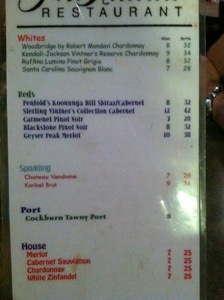 But clearly something was missing–my lovely bride who was suffering through this wine menu in the ‘Big Easy’: