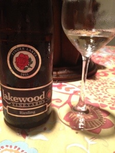2011 Lakewood Vineyards Riesling: Suggested Retail $13. Another wine that was a bit closed on the nose but peach and apricot came through clearly on the palate. There was a decided chalkiness that dominated all the way through the finish. Good to Very Good. 85-87 points.
