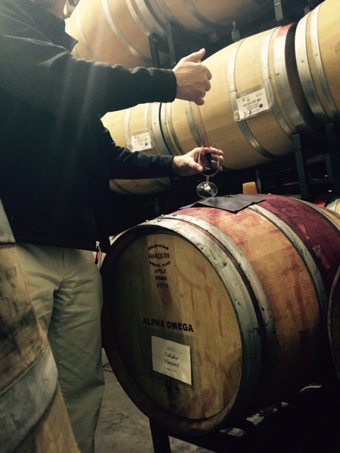 Nathan then took us back into the barrel room where we sampled three of the single vineyard Cabernet Sauvignons that were almost ready to bottle. The Sunshine Valley Vineyard was the fruitiest and least “Cabernet-like” with bright berry fruit and nice balance (Outstanding). The Beckstoffer To-Kalon was beautiful with more oak evident and a finish that I can still taste (Outstanding Plus, on the verge of “Whoa”). The ERA is the top of the line at Alpha Omega (I am not sure if that would be the “Alpha” of the “Omega” however) and is truly a magnificent wine, which is actually a blend of the best barrels from three single vineyards (including To-Kalon–if you are blending To-Kalon into another wine, you know it is going to be good [and pricey–the ERA goes for around $200/bottle]). This wine is but a baby, but it is one of the better wines I have had this year, certainly. Even before it is in the bottle, this achieves full-on “Whoa” status (and could likely hit three or four “Whoa” easily).
