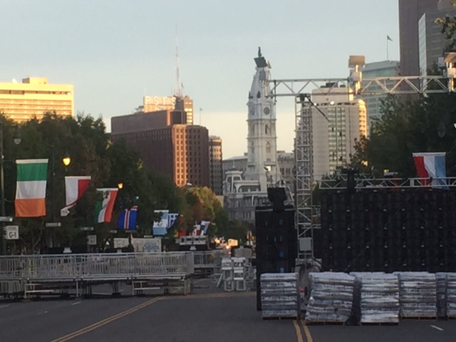 I am torn about the whole Pope thing–on one side I am proud of our little neighborhood, hosting perhaps the most internationally well-known individual (after the leader of the free world, Joe Roberts). On the other, it makes our lives a bit more difficult than they already are: Streets have been closed since Monday (the pope does not even get to Philly until tomorrow), my older son has been out of school since Tuesday afternoon and does not go back until this coming Tuesday (the school district, perhaps the worst run in the U.S. has decided to make up the time by taking days away from Spring Break), and while we are allowed to use our car, if we drive it outside our neighborhood, we are not allowed to come back.
