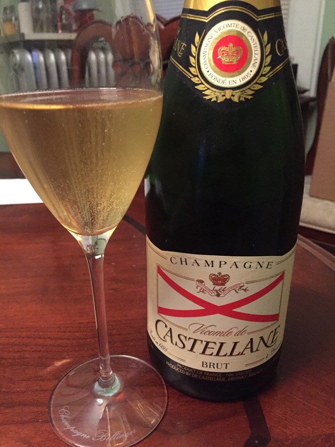 Well, this week, World Champagne “Day” turned into my own little “Champagne Extended Weekend” and we went through a few bottles (you will notice that there was an odd Beaujolais thrown in there, which was quite good, but it sticks out more than a little, no?). The best of the lot was clearly the 1999 Perrier-Jouët Champagne Cuvée Fleur de Champagne (which is also known as the “Belle Epoque” a confusing story that was cleared up a few years ago–only the bottles intended for the American market were labeled as “Fleur de Champagne” all others were “Belle Epoque” but starting with the 2006[?] vintage, all are now labeled “Belle Epoque”). I decided, however, to opt for the NV Vicomte de Castellane Champagne Brut as this week’s Wine of the Week for three reasons. First, it was delicious. Second, it was the last of several bottles I bought some time ago. And third, ever since I have been “into” champagne, I have heard producer after producer claim that there is no value in aging Non-Vintage champagne since it will not improve at all. Well, this bottle proves that stance to be poppycock. And I like saying poppycock.