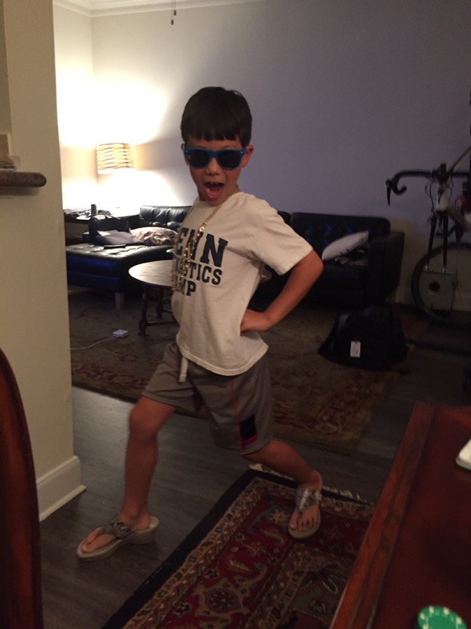 3. He sports his mom’s jewelry and sandals quite nicely! LOL