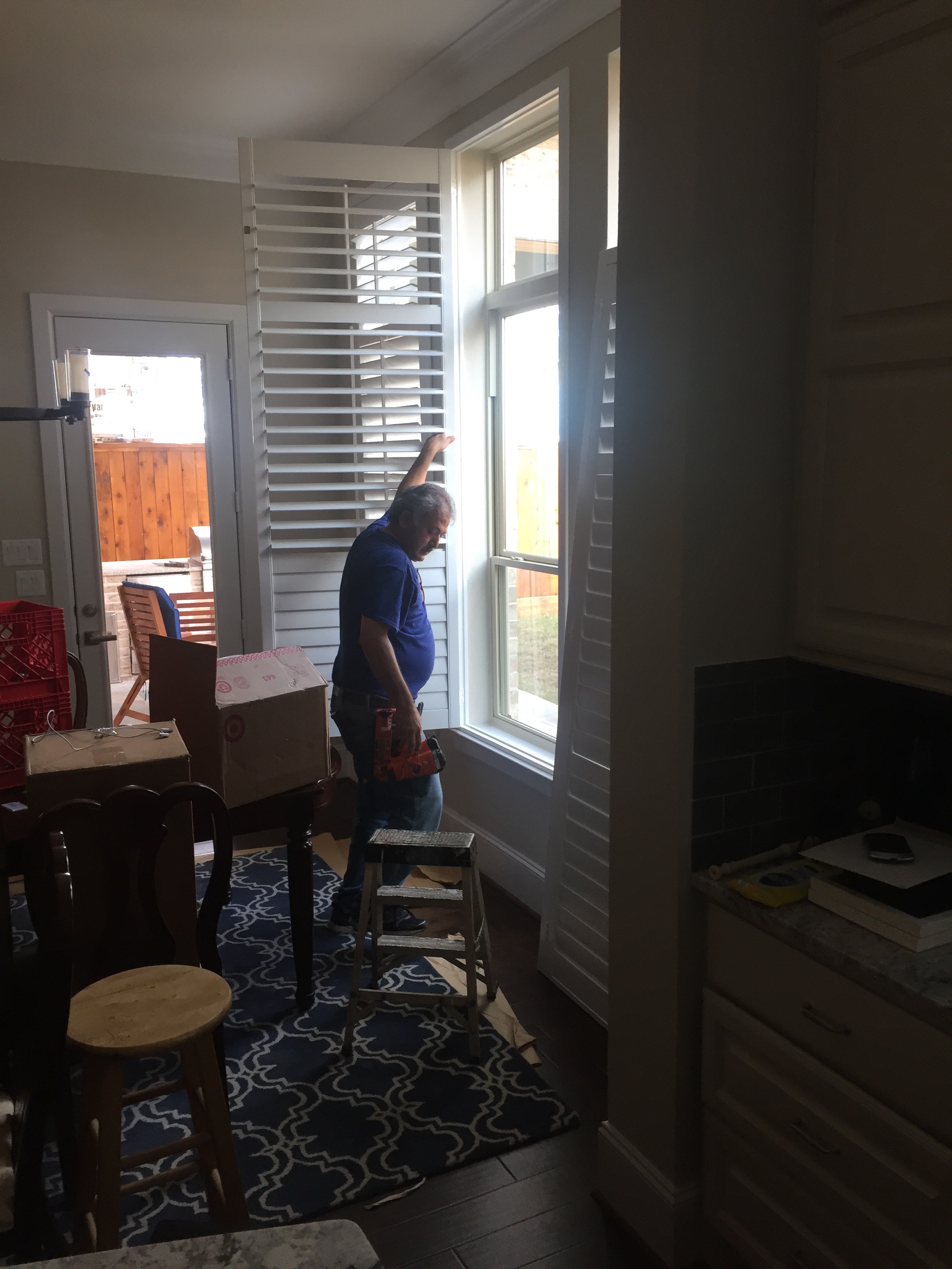 At the door was not the cable guy, but rather two scruffy looking characters who were there to install the shutters (my wife assures me that she had told me about their scheduled arrival, but…). The two waltzed in and proceeded to tell me that I had to move about 90% of the boxes in the house so that they would have enough room to work.