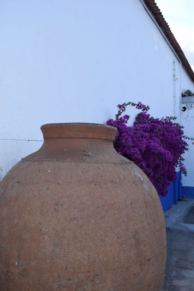 Alentejo was different, though, with nearly every building white washed with bright colored trim. In most of Alentejo, gold is the most common trim, which represents grain and therefore wealth. In Reguengos de Monsaraz, though, being further south and east, the buildings were trimmed uniformly in blue due to the influence of the Moors. The significance? Apparently, the Moors were less interested in wealth and concentrated on more earthly concerns: the blue was believed to repel insects.
