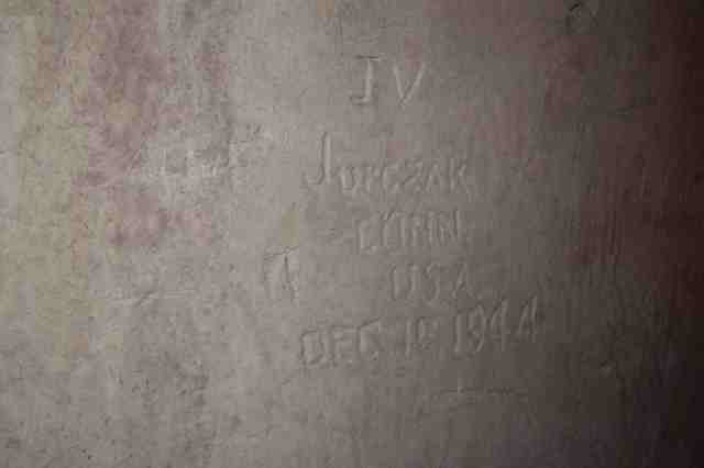 The facility also came with 1.7 kilometers of underground caves. Here is the etching of an American GI who was part of the liberating force in World War II.