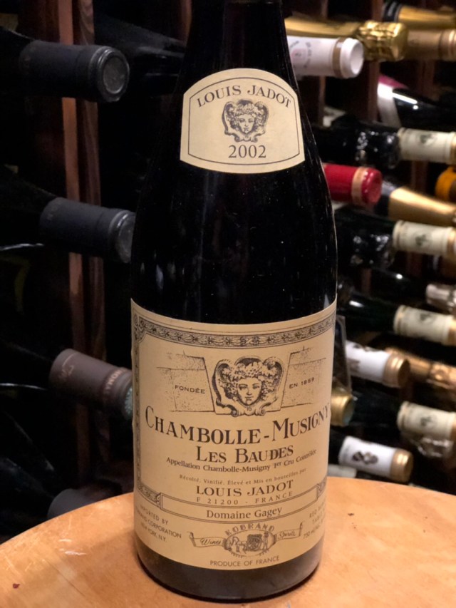 One of the many Jadot wines in my cellar, this 2002 Chambolle-Musigny Les Baudes is ready to drink.