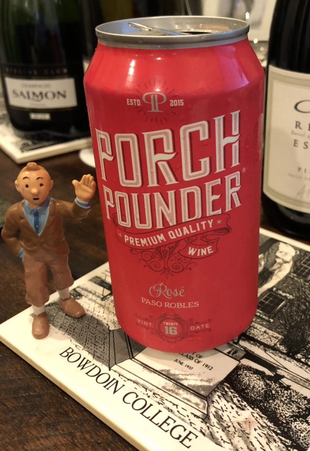 2016 Porch Pounder Rosé Paso Robles: Retail $24/4 375ml cans. While the varietal make-up of this pinky is as shrouded in mystery as its paler cousin, this does have the “Paso Robles” appellation attached to it, which is much more precise. I like precision. I think. Maybe I don’t. I am not sure. Let me get back to you on that. As for the wine? “Pretty, pretty good” to quote Larry David (who has not endorsed this wine, as far as I know). Good fruit (I am guessing that it is mostly Grenache/Syrah given the region) of watermelon and strawberry, with ample acidity (I am also going out on a limb and assuming that this is a saignée), and a more-than-halfway-decent finish. Is that a ringing endorsement? Not really, but this is a solid wine and I would not hesitate to take it to our little community pool just down the street. Very Good. 86-88 Points.