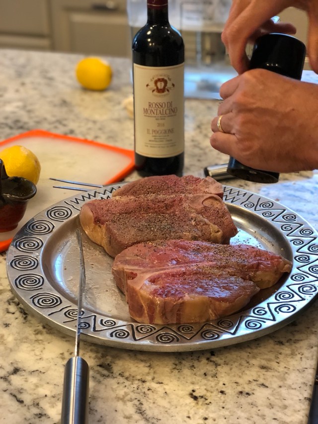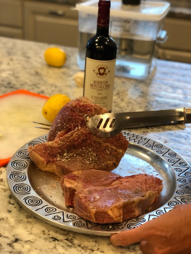 Recently, the kind folks at Tenuta Il Poggione in Montalcino asked me to make some steak Florentine to pair with their Rosso di Montalcino, what many refer to as a “baby Brunello.” So here are the steps I took, from beginning to end, using my favorite toy, the Anova Immersion Circulator and my impeccably designed outdoor kitchen (yes, I am taking full credit for it despite having no idea if I deserve it).