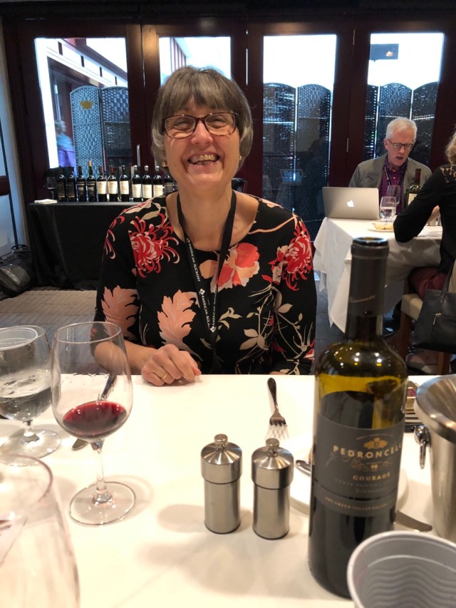 After the tasting, we were whisked next door to a “speed dating” lunch. One-on-one with eight different wineries for 15 minutes each. Eight different courses. Woof. My next-to-last course was with the lovely Julie Pedroncelli.