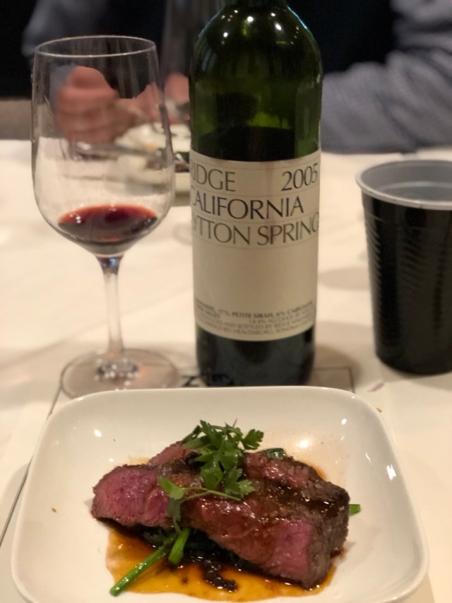 The last course of perfectly prepared trip-tip was served with a 2005 Ridge Lytton Springs, brought by Ridge President David Amadia.
