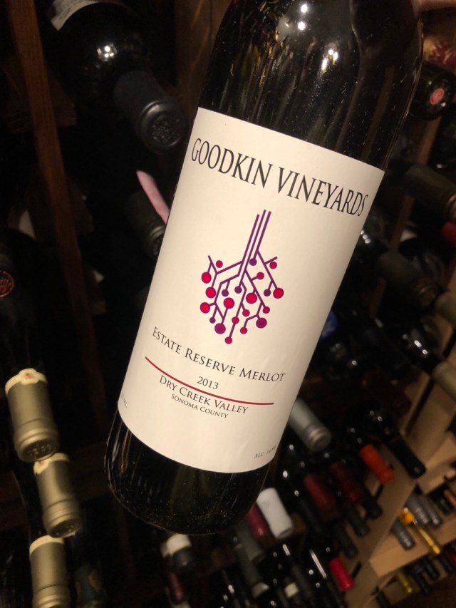 WINE OF THE WEEK: With a slight nod to the NCAA Tournament that begins in a couple of days, choosing the Wine of the Week was a lay-up. Sure, we went through a bunch of solid wines this week, from a classic Bordeaux to a Carneros Pinot, a Beaujolais Cru to a solid Champers. But this week was all about the 2014 Goodkin Vineyards Merlot Estate Reserve. There was only one barrel made (which renders the term “Reserve” a bit tongue in cheek), and it is not available to the public, but I received a case as a thank you for assisting in the bottling. I am halfway through that case now and this wine is really singing. More than what is actually in the bottle, though, drinking this wine opens up a flood of memories of time spent with a friend who helped show me the treasure that is the Dry Creek Valley.