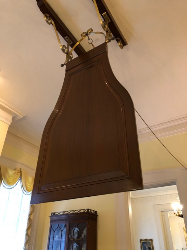 A huge wooden punk fan adorns the elegant dining room.