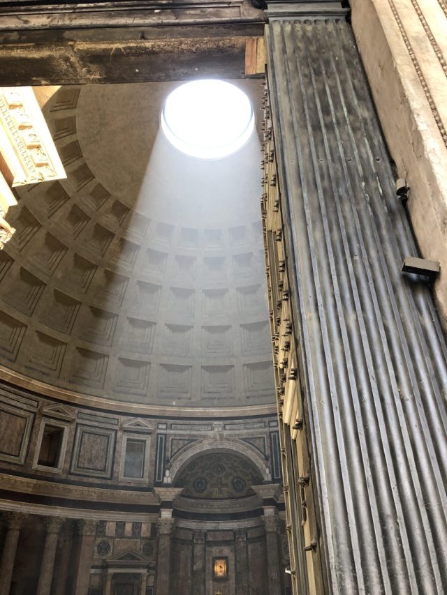 The sun was shinning bright (and hot) through the oculus of the Pantheon.