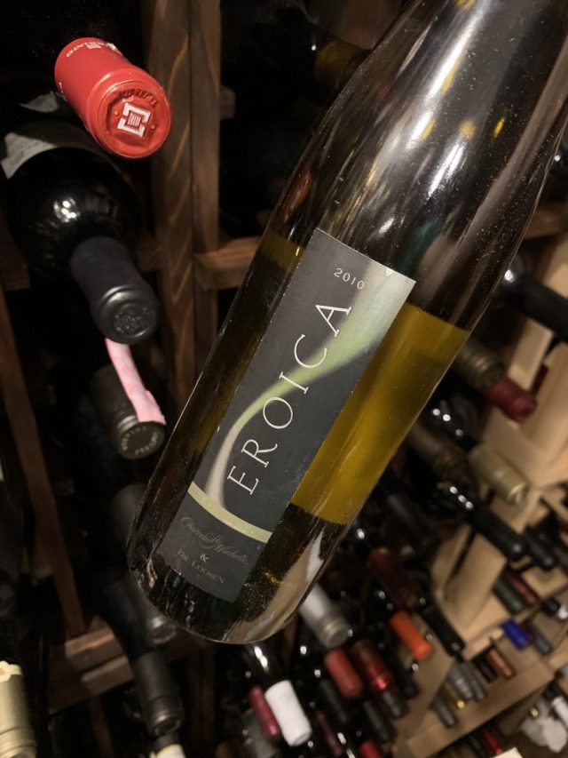 WINE OF THE WEEK: Another interesting week with wines from the cellar, so choosing a Wine of the Week was not easy. As I write these words, I still have no idea which wine it will be. There are two distinct categories: non-vintage champagne and still wines that were over a decade old. It would be easy to pick one of the champagnes as it is easily my favorite wine region and style of wine and we drink a ton of it. Similarly, it is always fun (OK, almost always) to open up an older wine and see how it has aged. My wife often chastises me when we open an older wine and it has not held up all that well, but that has not really deterred me from continuing the practice (I just don’t tell her). While all of the wines this week could certainly have been selected, I opted for the 2009 Chateau Ste. Michelle & Dr. Loosen Riesling Eroica as the Wine of the Week for no other reason than to show that relatively inexpensive white wines can sometimes age pretty darned well.