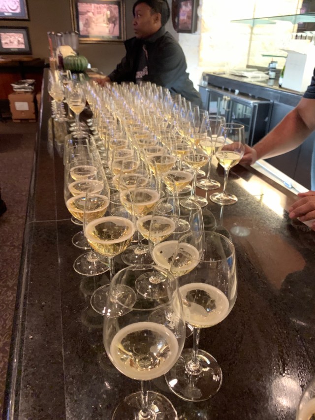 For me, I lucked out a bit this year. The last time I judged, I tasted 50 New World Pinot Noirs with retail prices from $5 to $11. Ouch. That was not fun. At all. This year was much better. On Day One, my panel tasted a total of 96 wines: 17 Old World Pinot Grigios ($15-30); 9 “Other Semi-Dry Whites” ($16 and up); 57 New World Pinot Noirs ($30-40); 13 Dessert Wines, Fortified or Oxidized ($20 and up).