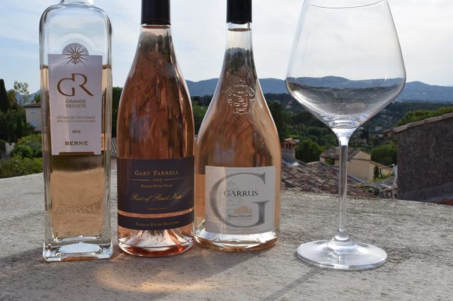 More rosé. I particularly like this shot for a couple of reasons. First, it was taken on a rooftop in Mougins, a medieval town in the hills above Cannes. Second, that middle wine is actually from California and I brought it over (I am likely one of the few people ever to bring an American rosé to Provence). We tried it alongside two Provençal rosés, one of which (the Garrus) is one of the most expensive rosés in the world (~$100).