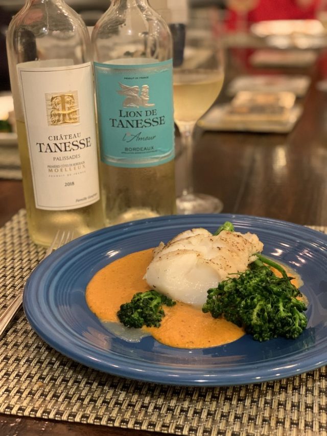 One of the staples in our house, I adapted a classic Thomas Keller recipe of monkfish with Romesco sauce for my family. My father-in-law prefers cod to monkfish and I add a bit of Gochujang (a Korean spicy red pepper paste) to the Romesco sauce since my wife’s parents are both from Korea. For this dish, I opted for two relatively new wines from Château Tanesse which are slightly less sweet than a “typical” Sweet Bordeaux.