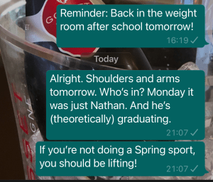 I have been coaching the JV Boys Basketball team at the kids’ school (long story) since we moved here. This off-season, I am making a concerted effort to get those team members who are not participating in a Spring sport to come work out in the weight room three times a week. Thus far, attendance has been, at best, sporadic. As such, I posted this on the team’s group chat: