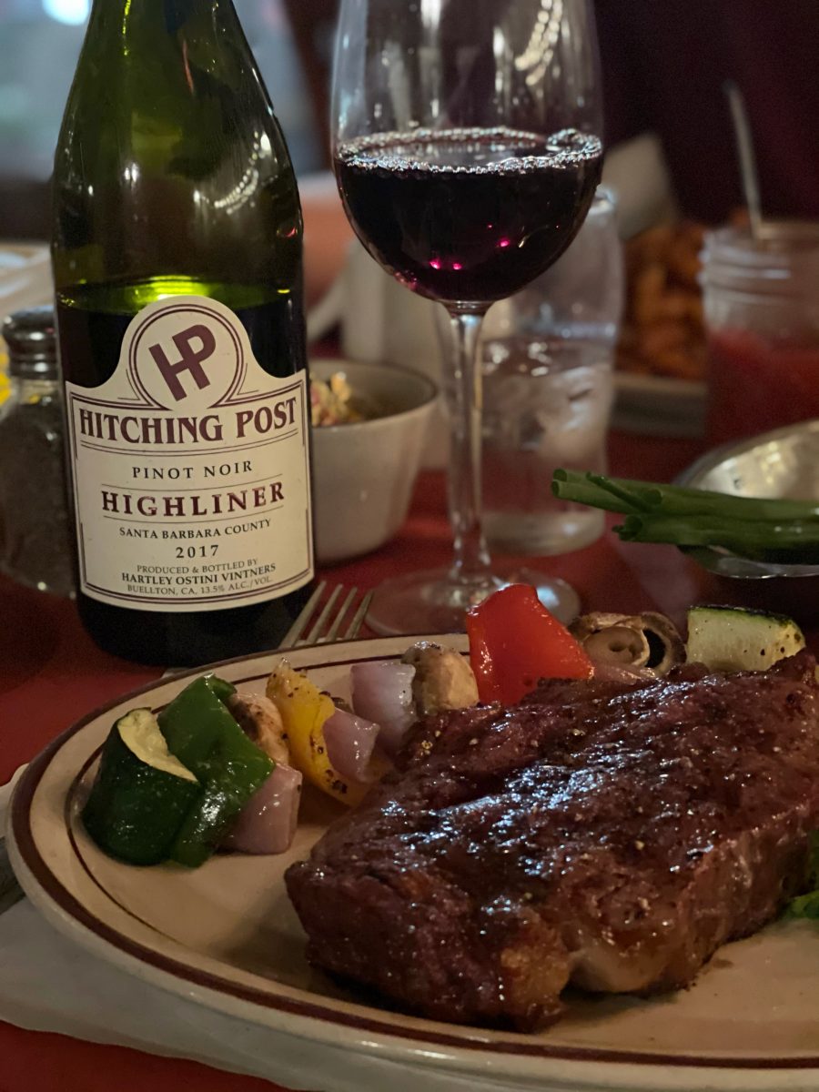 2017 Hitching Post Highliner Pinot Noir, Santa Barbara County, CA: Retail $40 ($55 at the restaurant). Gray Hartley and Frank Ostini have been making wine for Ostini’s Hitching Post restaurant since 1979, long before any movie. We headed out to the Hitching Post in Casmalia since the HPII was closed and all the other restaurants in the Buellton area were either all closed, looked horrible, or had a wine list that consisted of red or white” with no further description. There is a reason I had never heard of Casmalia: there is nothing there other than the restaurant–total BFE. No cell reception. No WI-FI. Plenty of cows. Screw cap $55. Light in color. Plenty of cherry, some rose petal, a bit of earth. Lovely. The palate is on the light side when it comes to Pinot, but balanced between fruit, earth, and tartness. This evolved over the hour and by the end, was really singing. Was it worth the drive? You betcha. Excellent. 90 Points.