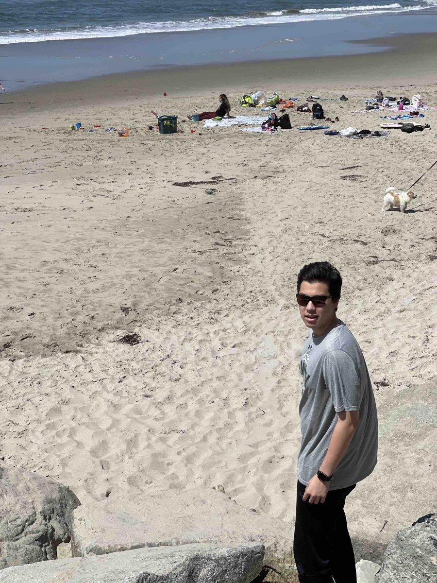 The only photo I was able to get of him actually on a beach with something approaching a smile.