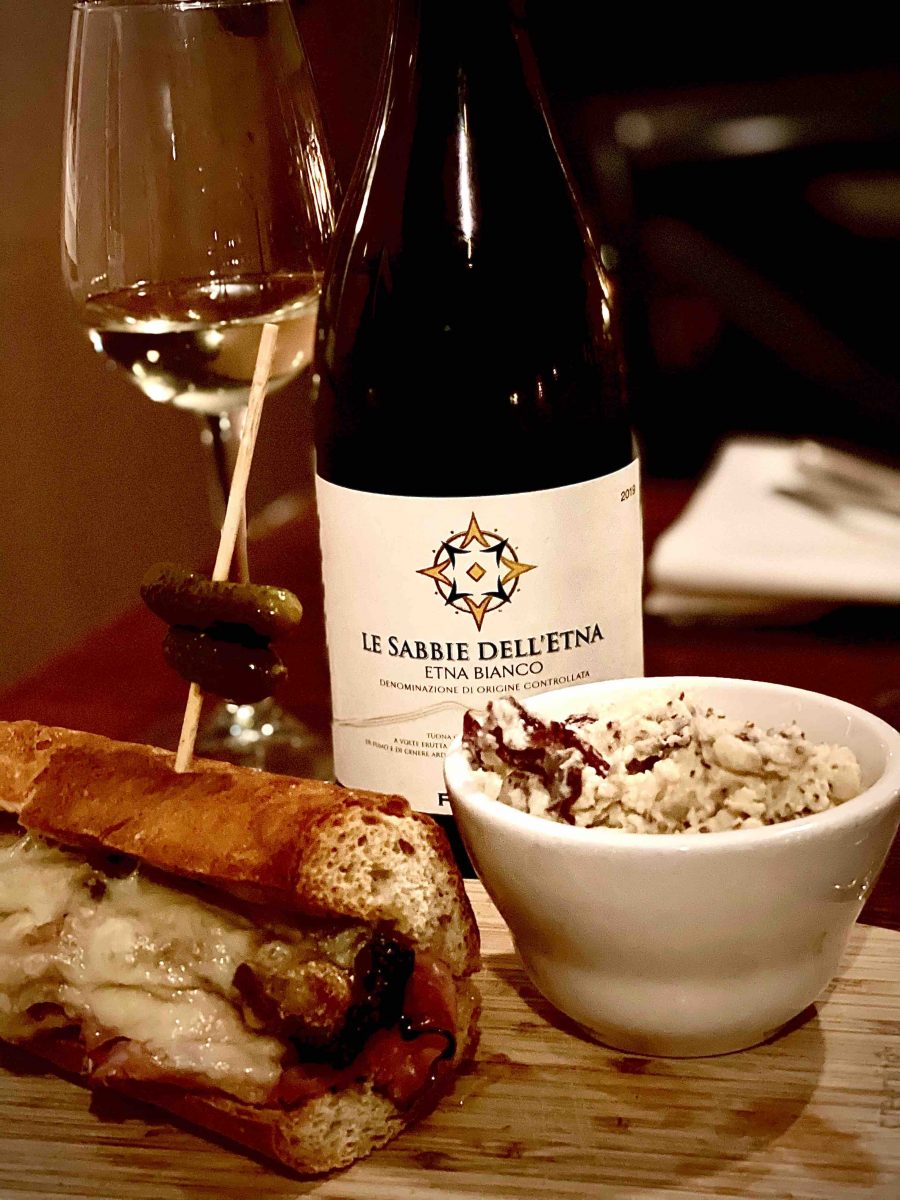 I settled on Bridge Tap House and Wine Bar, which was a 10 minute walk from the hotel. Fabulous. While the wine list was not extensive, it was excellent, and I settled on a 2018 Firriato Le Sabbie dell’Etna Bianco, a white wine from the slopes of the Etna volcano in Sicily, made from Carricante and Catarratto, two of the main white varieties of the island. I paired it with Bridge’s interpretation of a Cuban sandwich and both the wine and the food were divine.