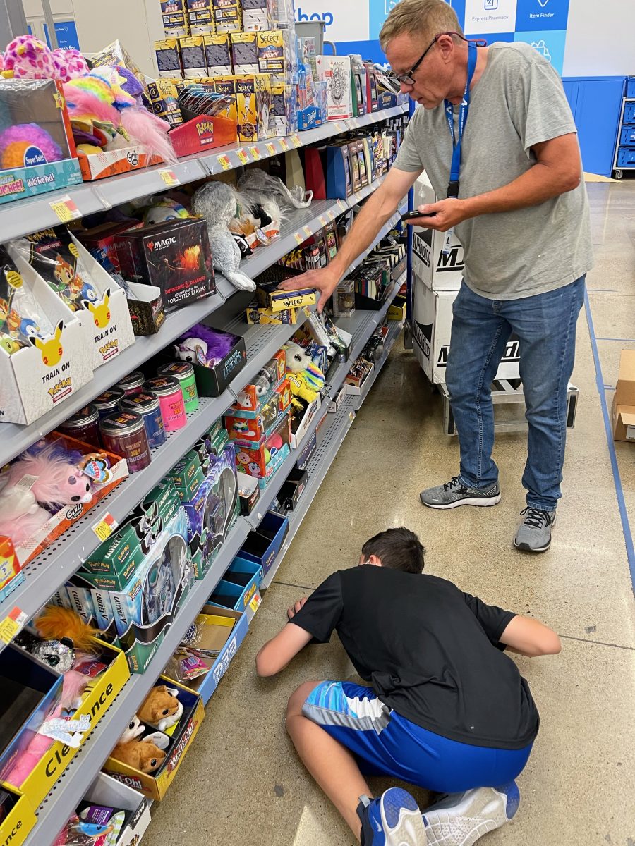 Sebastian, on the floor of a Walmart in Arkadelphia, Arkansas, trying to see if any basketball cards had fallen behind the shelf.