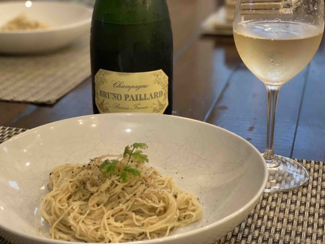 Bruno Paillard with my second attempt at Cacio e Pepe. Whoa.