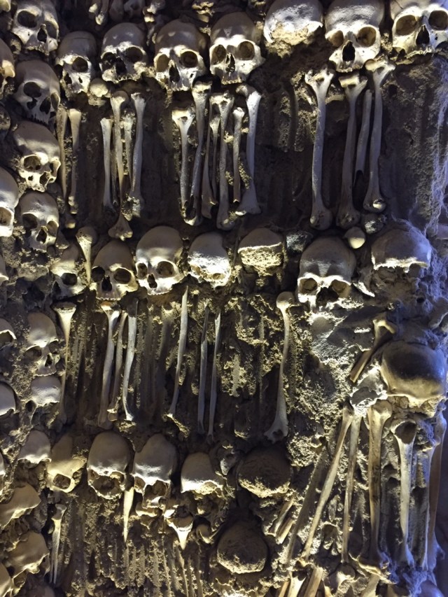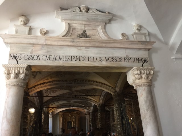 Perhaps the most visited site in Évora, however, is the Capela dos Ossos (Chapel of Bones). Reminiscent of the catacombs in Paris, the tiny Chapel contains approximately 5,000 skulls that were exhumed during the 16th Century. During the Middle Ages, cemeteries were placed outside the city, but as the city grew, the land was needed for new development. Instead of re-burying the corpses, they were moved to this chapel. At the time (and perhaps even today), this was seen as disrespectful to the dead, but the Franciscan monk at the time wanted to show that all were equal.