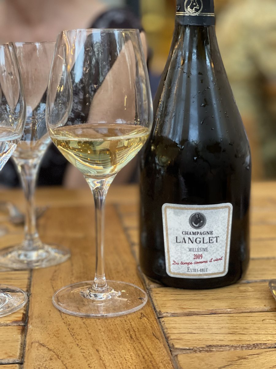 2009 Langlet Champagne Du temps comme il vient, France: 95€ at a restaurant in Paris. I looked, but could not find the varietal composition, but I am guessing it has to be close to 50/50 Pinot Noir/Chardonnay. I have no familiarity with the house so when I saw this vintage on the menu, I jumped. Straw to yellow in the glass with intense citrus and a healthy yeasty component. The palate is quite fruity, but also really dry. The latter was expected (given that it was labeled as an Extra Dry) but the former was a surprise. I am guessing this wine could use some more cellar time to let the secondary flavors develop a bit further. Very Good. 89 Points.