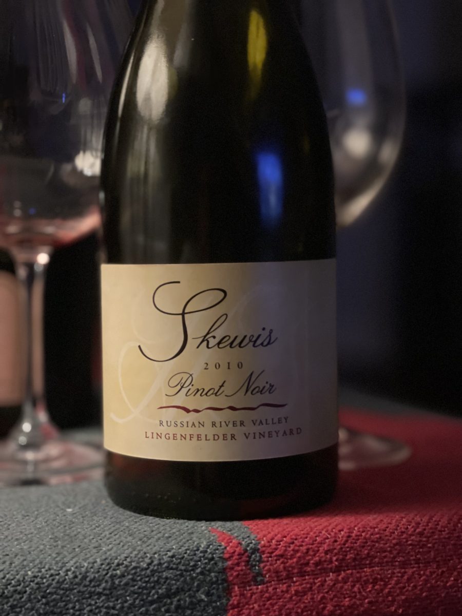 WINE OF THE WEEK: Easy. As in really easy. Picking the Wine of the Week this go around was much easier than usual with the 2010 Skewis Pinot Noir Lingenfelder standing head, shoulders, torso, and legs above the others this week. Had I lined them all up beforehand? I probably would have gone with the 2007 Palmer based on reputation, but that’s why we pull the corks, as they say. I still have quite a few bottles of Skewis in the cellar (have I mentioned that my wife does not like “old” wine so the occasions to open them are few), so I imagine another bottle or seven of Skewis Pinot will “win” this coveted “award” but I just need to find someone to help me drink them!