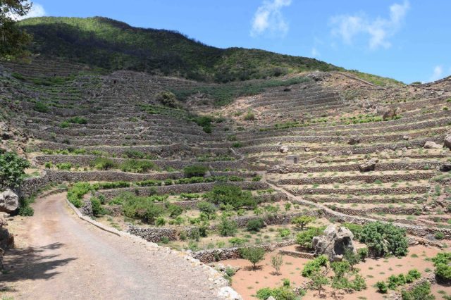 Perhaps the most spectacular scene of the spectacular island of Pantelleria was this terraced mountainside. It is a farm for capers.