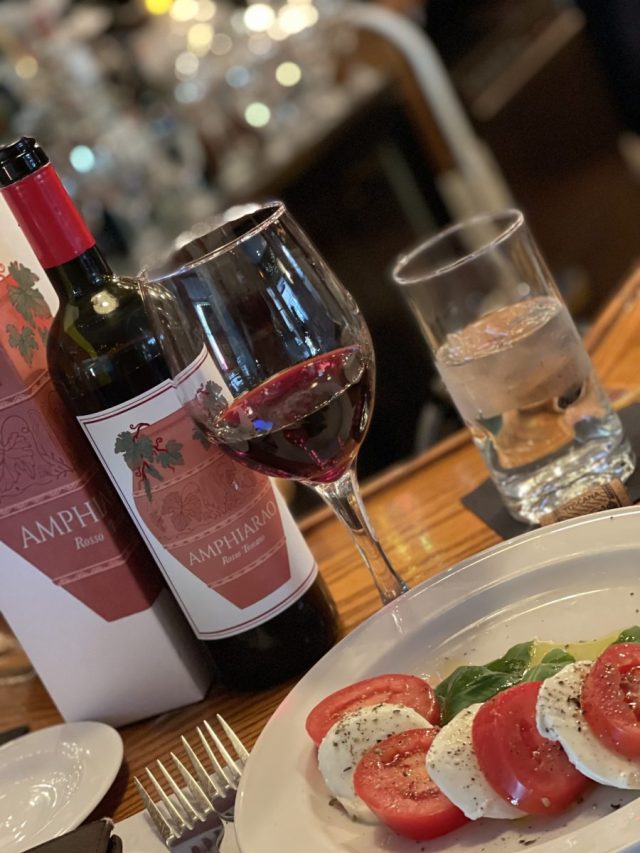 2018 Castello Vicchiomaggio Amphiarao Toscana IGT, Italy: Retail $40. On premise $60. Agglomerated stopper. Cabernet Sauvignon, Petit Verdot, Sangiovese. From the Maremma region of Tuscany. Aged for 12 months in 500 litre amphorae of Impruneta terracotta. Surprisingly light in color, particularly given the Petit Verdot. The nose is laden with dark berry fruit, blackberry and cassis, considerable earth, and just the slightest hint of funk. The palate is quite a bit lighter than the nose portends with bright fruit and brilliant acidity. As I mentioned, quite light on its feet but it held up beautifully to both the Caprese salad and the spaghetti puttanesca. Wonderful. Excellent. 92 Points. It was also refreshing to see a local importer on the back label although the importer’s name, “Wines, LLC”, was a bit lacking in creativity.