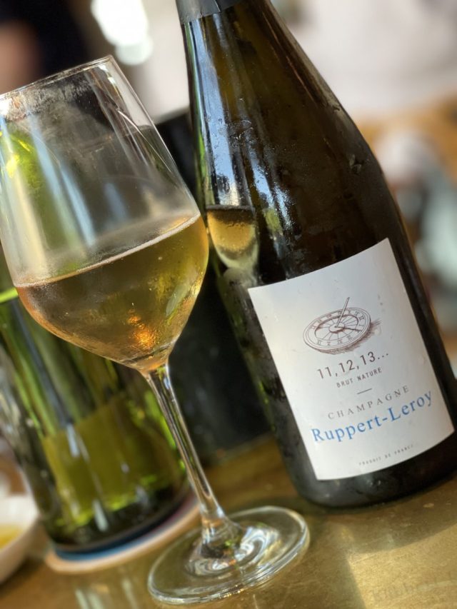 NV Ruppert-Leroy Champagne Cuvée 11, 12, 13 Brut Nature, France: Retail $65. 50% Pinot Noir, 50% Chardonnay. Biodynamic. Aged in oak foudres and stainless steel. We were in Austin, at one of the “hottest restaurants in town” and we opted for this cuvée from a grower in Essoyes in the Aube. While we were not entirely sure the hype for the restaurant was deserved (it was fine, but nothing more, and certainly not worthy of the price), this champagne was certainly the highlight. Made from a perpetual reserve, it is close to golden in the glass with intense lemon and a healthy brioche, a hint of hazelnut, and even a dose of minerality. Whoa. The palate is, understandably, quite tart, but the fruit certainly holds its own as does the yeasty, brioche component. Yowza. Outstanding. 94 Points.