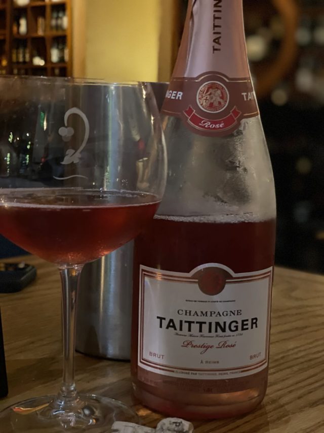 NV Taittinger Champagne Brut Prestige Rosé, France: Retail $70. 70% Pinot Noir, 30% Chardonnay. We were in an empty restaurant. Literally, no one else in a place that could sit easily 70. No. One. We had one bottle of champers already and we didn’t want to go back to the hotel and we didn’t want to go for a stroll since it was 100° outside. The restaurant on Thursdays had champagne at half off. No brainer: order another bottle. Fairly dark in the glass, this has to be in the upper 10% of hue when it comes to rosé champagne. Dark cherry and even raspberry on the nose with perhaps some rhubarb. Yowza. Rich, even close to unctuous, which is odd for champagne. Yeah, this is a big boy, One of the “darker” champers I have had, much more vinous than just about any champagne and that is saying something. Outstanding. 93 Points.
