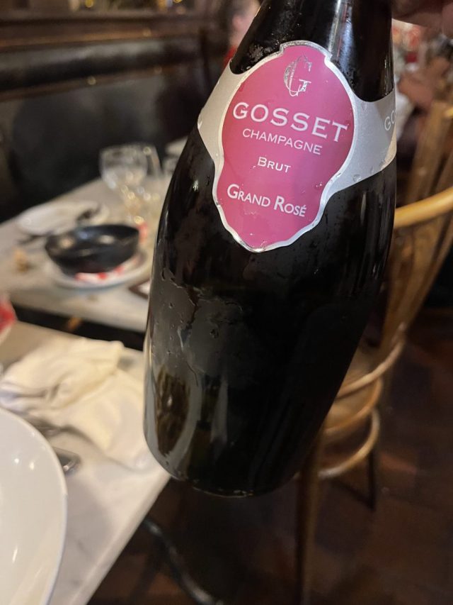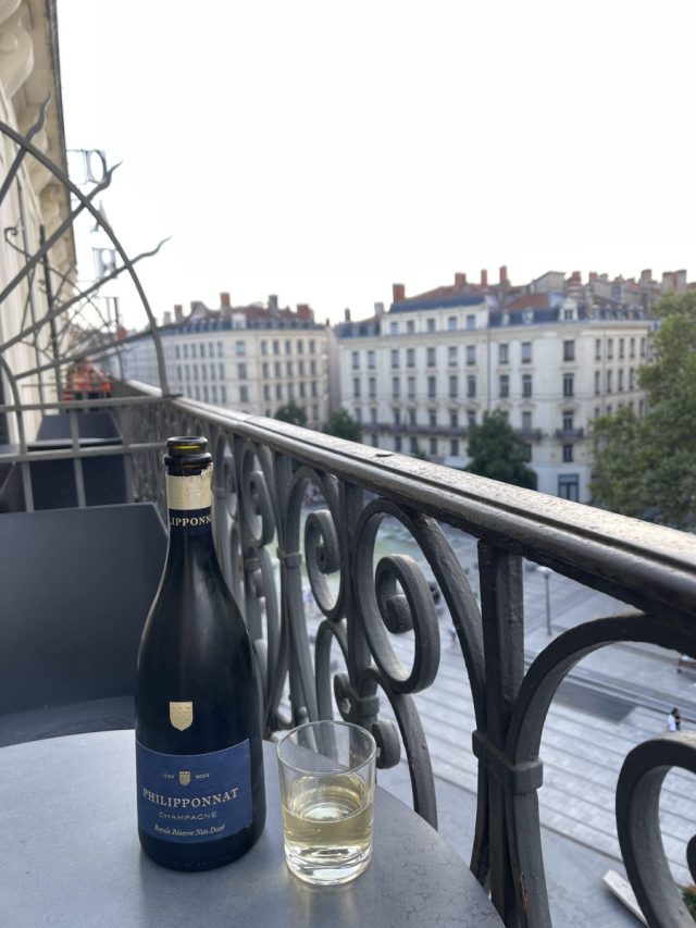 On the second night in Lyon, I chose the restaurant solely due to the fact that they had this on the wine list, perhaps my favorite rosé champagne. The fact that the restaurant did not have air conditioning was not important to me. It turned out to be very important to the rest of the family.