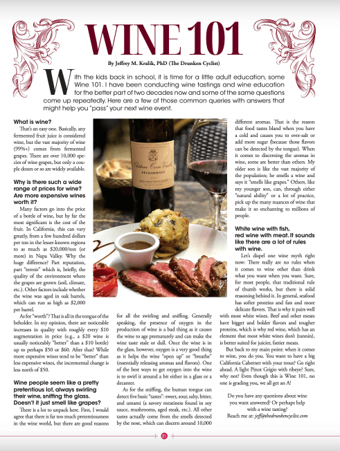 Last week, my September article was published in two local magazines. This month, I provide a little Wine 101 session with some questions I get asked fairly frequently. Please check out either (or both) by clicking on the screenshots below and let me know what you think!