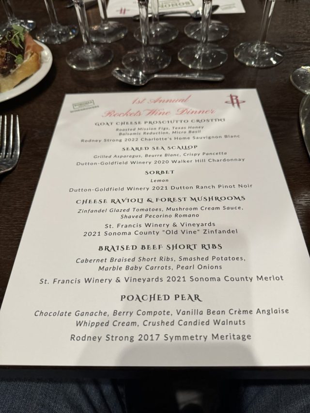 The event was to celebrate a new partnership: the Rockets had teamed up with the Sonoma County Winegrowers to be the exclusive provider of wine for Rockets games at the Toyota Center.