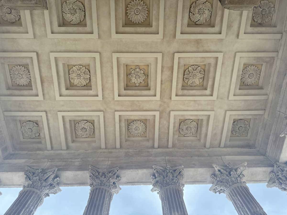 Even though the clouds were ominous, I pressed on buoyed by the day pass that I had purchased at the amphitheater, and headed for La Maison Carrée, a short ten minute walk away. Touted as one of the best preserved Roman temples outside of, wait for it, Italy.