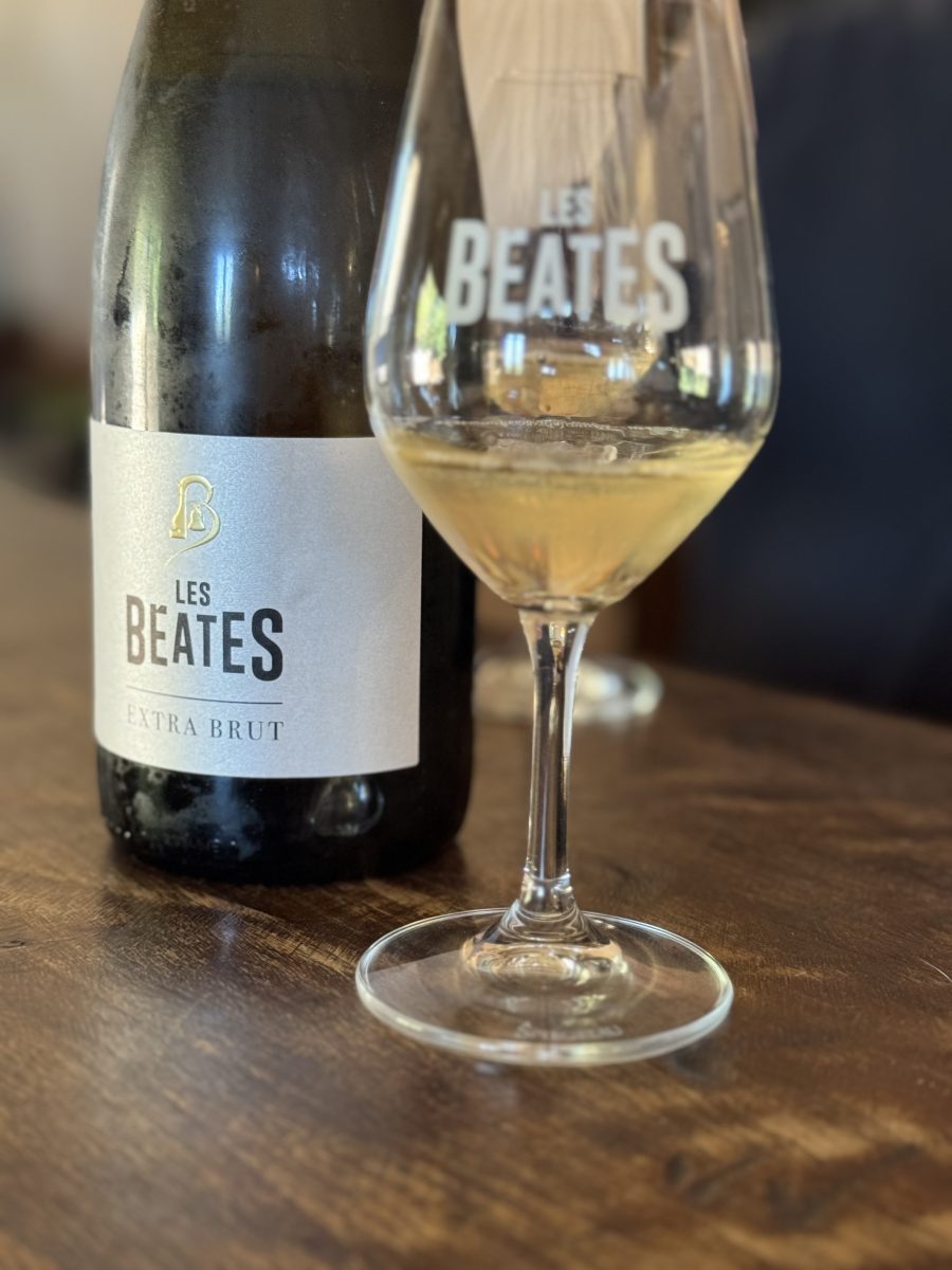 NV Domaine les Béates, Extra Brut, Vin de France: Retail 20€. 40% Ugni Blanc, 40% Chenin Blanc, 20% Grenache Blanc. Extra Brut. Méthode traditonelle. Actually a brut zero (no dosage), but that makes it sound like a “zero”, according to Pierre François, while “extra brut” is “extra”. Green apple with honey and white peach on the nose and palate. This is fruity, dry, and incredibly refreshing. Excellent. 90 Points.